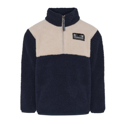 Navy farvet fleece jakke til børn.Materiale i 4-vejs stretch med gennemgående lynlås og høj hals.