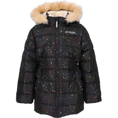 Børne jakke fra ZigZag. Super smart model med "glimmer" Gennemgående lynlås og imiteret pels på hætten.