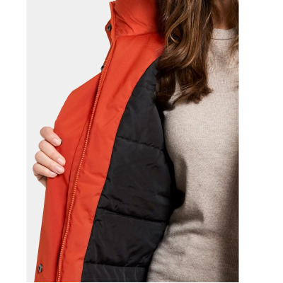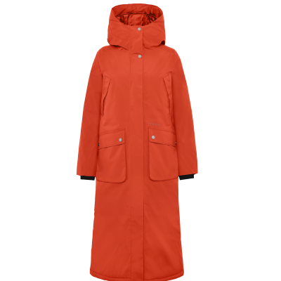Melody er en lang og polstret parka med en lige pasform, perfekt til både stil og funktion i hverdagen. Den er vand- og vindtæt med tapede sømme og lavet af et åndbart materiale, hvilket gør den ideel til alle vejrforhold. Parkaen har en justerbar hætte og en tovejs frontlynlås, dækket af en stolpe med knapper for ekstra beskyttelse.